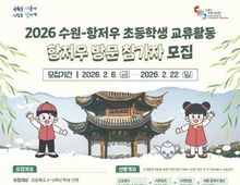 [경기핫타임뉴스=김삼영 기자] 수원특례시는 ‘2026 수원–항저우 초등학생 상호방문교류’에 참여할 초등학생 10명을 2월 22일까지 모집한다. 이번 프로그램은 수원시와 항저우시 초등학생이 격년제로 상호 방문하며 교류하는 국제교류 사업이다. 두 도시 미래 세대인 초등학생의 우호를 증진하고, 글로벌 역량을 갖춘 인재를 양성하기 위해 마련했다. 모집 대상은 수원시에 거주하거나 관내 초등학교에 재학 중인 4~6학년 학생이다. 참가자는 사전 교육과 교류 활동 등 전 일정에 참여할 수 있어야 한다. 왕복 항공료와 숙박비, 여행자보험비 등 참가비는 자부담이다. 프로그램은 4월 16일부터 19일까지 3박 4일간 중국 항저우시 일대에서 진행한다. 참가자들은 현지 초등학생과 교류 활동을 하고, 역사·문화 체험 프로그램에 참여한다. 서류심사와 면접심사를 거쳐 참가자를 선발한다. 서류심사 결과는 2월 24일, 면접심사 결과는 3월 3일에 발표할 예정이다. 참가신청서와 자기소개서, 학부모 동의서 등 관련 서류를 작성해 전자우편으로 제출하면 된다. 신청 서식은 수원시국제교류센터 홈페이지 공지사항 게시판에서 내려